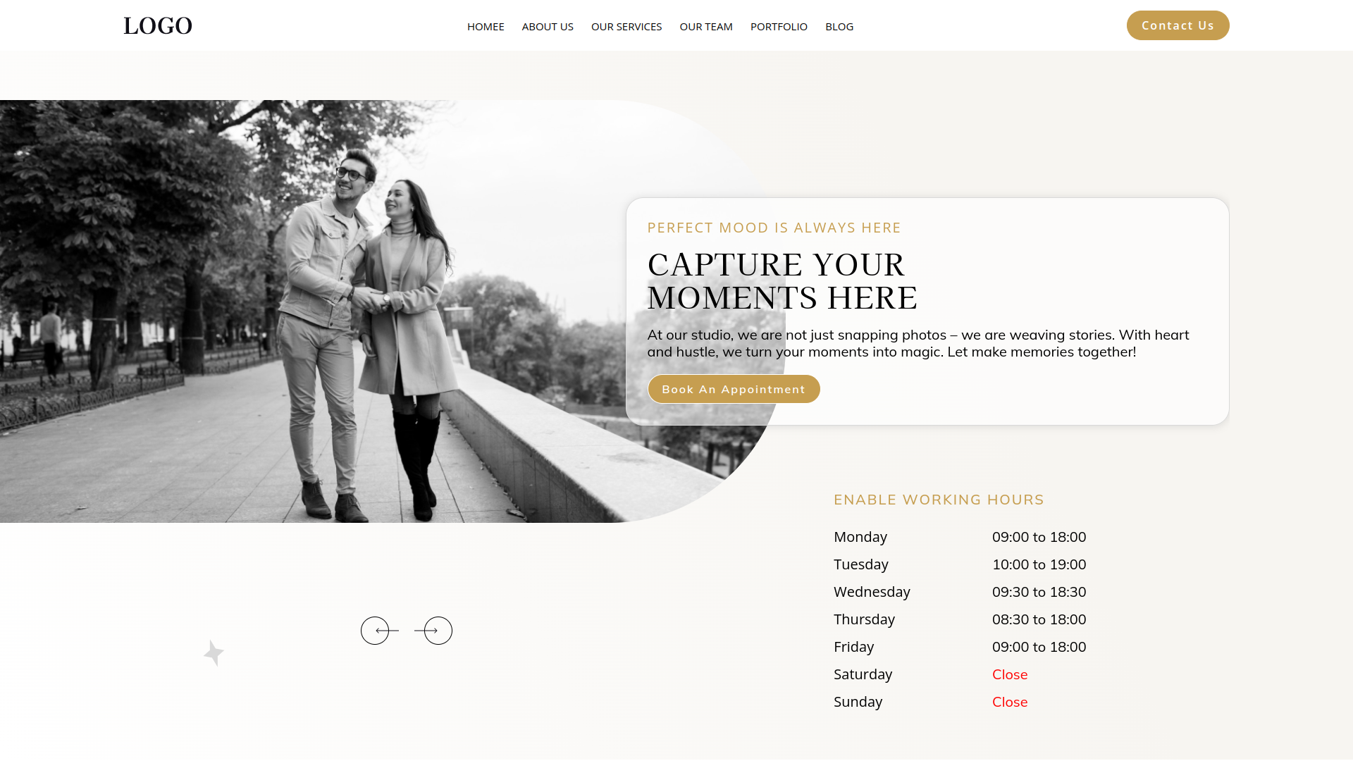 This theme goes beyond aesthetics. It fosters engagement and interaction with potential clients. Strategically placed calls to action, like Book Now buttons and contact forms, make it easy for visitors to connect with you for inquiries and schedule sessions directly through BookingGo intuitive scheduling system. Furthermore, you can showcase special packages and promotions directly within your galleries, sparking interest and driving potential clients to take the next step.